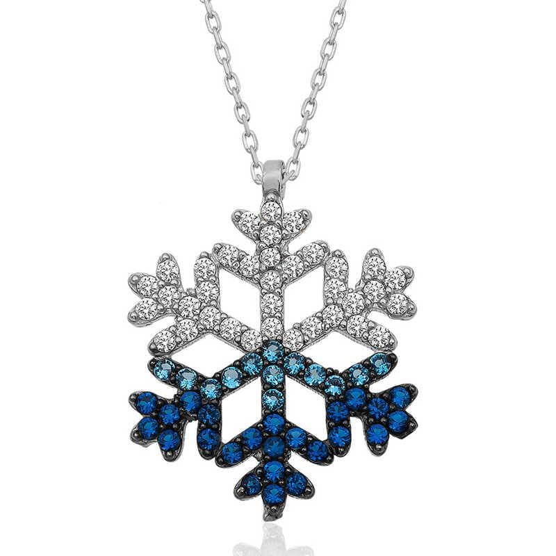 Kadınların ışıltısı, berraklığı kar tanesine benzetilip özel olarak tasarlanmıştır. Kar tanelerinin her birinin bayanlar gibi eşsiz ve ayrı kıymette olması onları özel kılan bir diğer özelliktir. Asilliği her dönemde dikkat çekmeyi başarmıştır. Bunun yanında insanların tıpkı kar taneleri gibi birbirlerine zarar vermeden de mutlu bir şekilde yaşayabileceklerini sembolize etmektedir. Bu şık kolye; doğum günü hediyesi, sevgililer günü hediyesi veya annelere hediye olarak özel günlerde tercih edilebilecek mükemmel bir seçenektir. Kolye, 925 ayar gümüşten imal edilmiştir. Gümüş üzerine rodyum kaplama yapılmıştır. Rodyum kaplama yapılan ürünler parlaklığını uzun süre muhafaza eder ve oksitlenmesi gecikir. Tüm gümüş kadın kolyelerde olduğu gibi bu gümüş mavi taşlı kar tanesi kadın kolye de tamamı el emeği ile üretilmiştir. Gümüş ve değerli taşlar nedeniyle belirtilen ortalama ürün ağırlığında ± %10 sapma olabilmektedir.