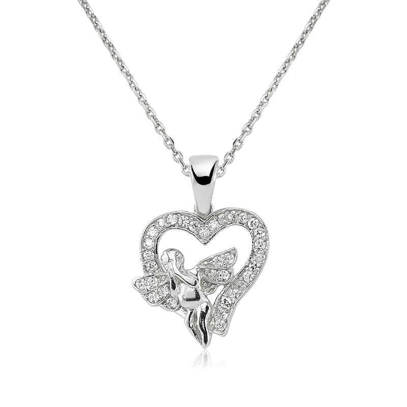 Gümüş Melek Kalp Bayan Kolye