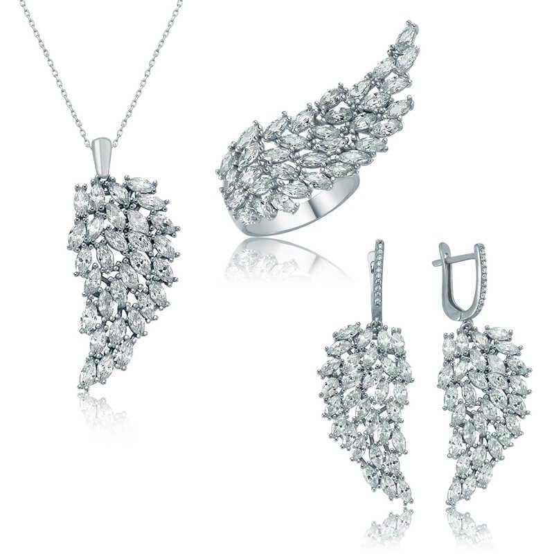 Melekler saflığın ve temizliğin simgeleridir. Bu nedenle melek set hediye edilen kişiye melek kadar saf ve temiz olduğu mesajı verilmektedir... Bu şık set; doğum günü hediyesi, sevgililer günü hediyesi veya annelere hediye olarak özel günlerde tercih edebilirsiniz. Bu özel melek kanadı tasarımı 925 ayar gümüşten imal edilmiştir. Gümüş üzerine rodyum kaplama yapılmıştır. Rodyum kaplama yapılan gümüş setler parlaklığını uzun süre muhafaza eder, oksitlenmesi gecikir. Tüm kadın gümüş setlerde olduğu gibi gümüş melek kanadı kadın set de el emeği ile üretilmiştir. Gümüş ve değerli taşlar nedeniyle belirtilen ürün ağırlığında ± %10 sapma olabilmektedir.