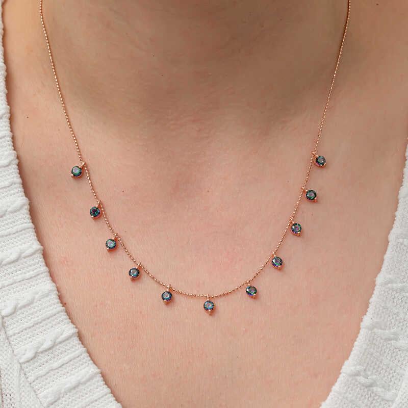 Gümüş Mistik Topaz Taşlı Şans Rose Kadın Kolye