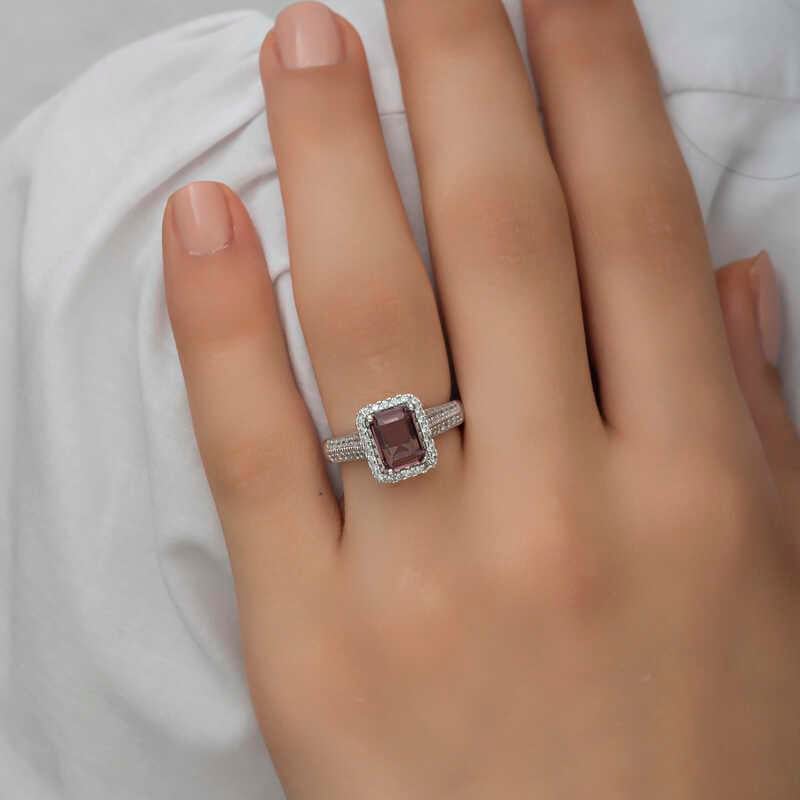Gümüş Mor Baget Taşlı Kadın Yüzük