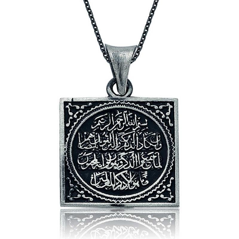 Nazar bakış demektir ve her canlıya nazar değebilmektedir. Bu nazar hastalığından korunmak, şifa bulmak için nazar duası okunur. Bu maneviyatı yüksek kolye; doğum günü hediyesi, sevgililer günü hediyesi veya annelere hediye olarak özel günlerde tercih edilebilecek mükemmel bir seçenektir. Nazar duası kolye modeli 925 ayar gümüşten imal edilmiştir. Gümüş üzerine oksit kaplama yapılmıştır. Oksit kaplama yapılan gümüş kolyeler parlaklığını uzun süre muhafaza eder ve kararması gecikir. Tüm gümüş bayan kolyelerde olduğu gibi gümüş nazar duası bayan kolye de el emeği ile üretilmiştir. Gümüş ve değerli taşlar nedeniyle belirtilen ortalama ürün ağırlığında ± %10 sapma olabilmektedir.