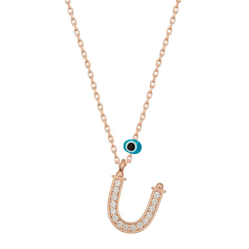 Gümüş Nazar Rose Ü Harfi Kadın Kolye