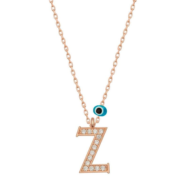 Gümüş Nazar Rose Z Harfi Kadın Kolye