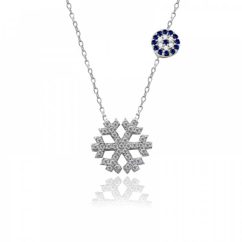 Gümüş Nazarlı Kar Tanesi Kadın Kolye