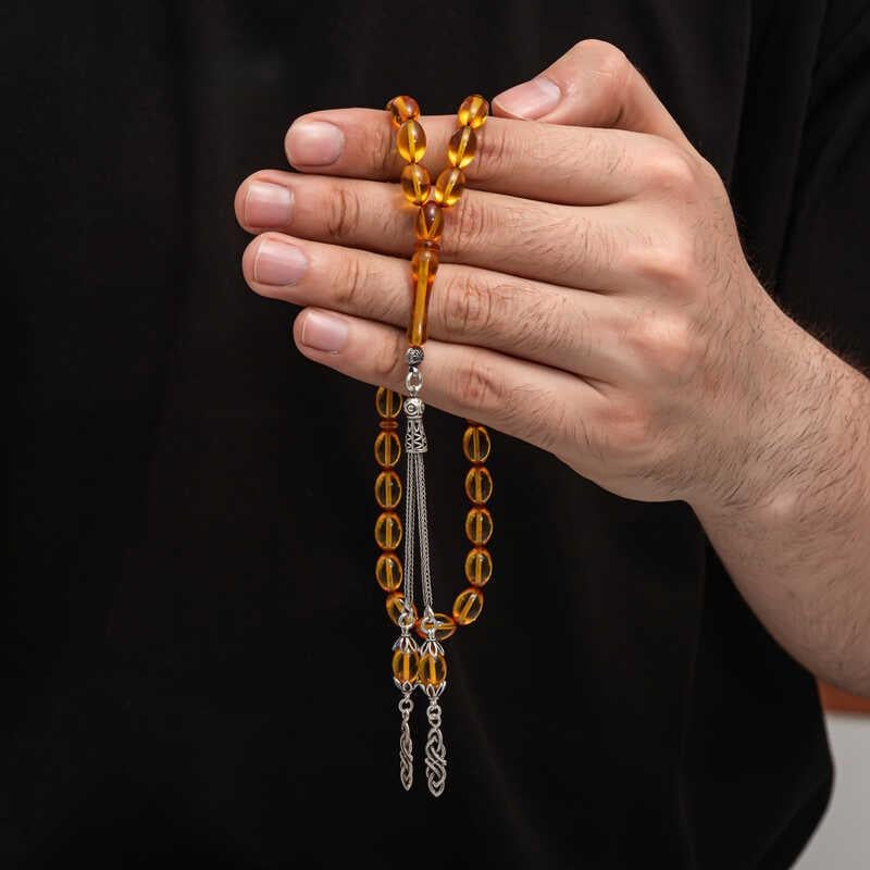 Gümüş Püskül Sıkma Kehribar Tesbih (BD11005116)
