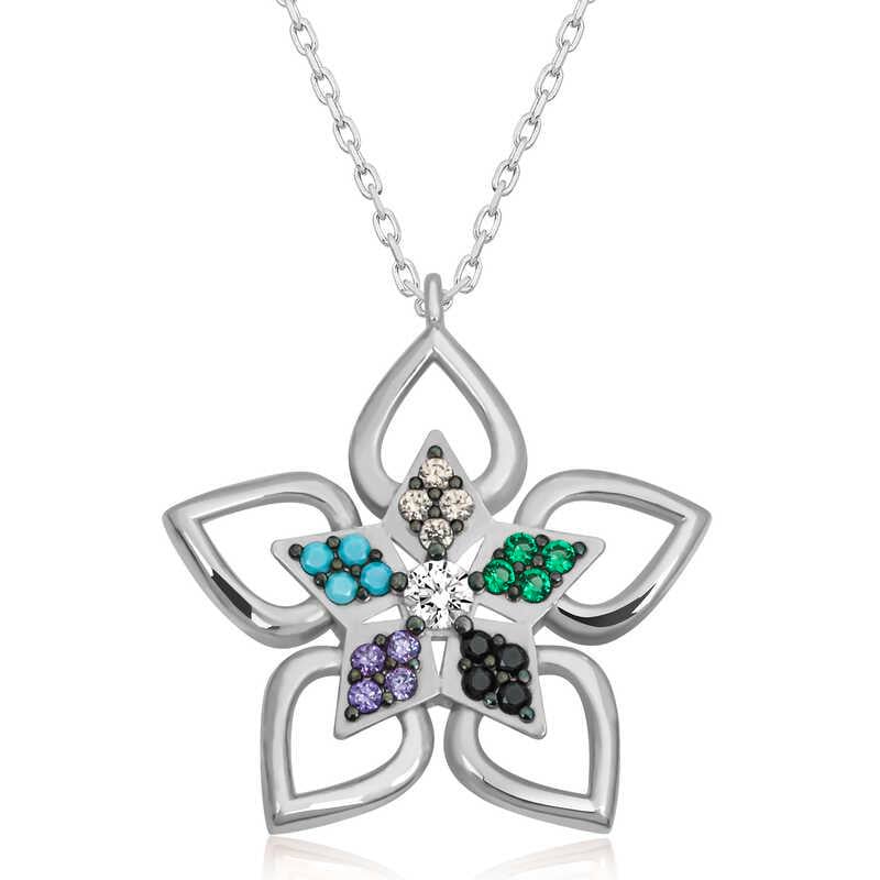 Sevdiklerinize duygularınızı ifade etmenin en özel ve zarif yolu O’na gönderebileceğiniz şık, rengarenk ve mis kokulu çiçeklerdir. Özel günlerde verilecek hediyeler arasında olan çiçek, bu kez farklı bir yorumla tasarlandı... Renkli taşlı çiçek kolye sevgisini bir kez daha anlatmak isteyenleri, sen bir çiçeksin demek isteyenleri bekliyor. Bu özel tasarım, çiçek kadın kolye 925 ayar gümüşten imal edilmiştir. Gümüş üzerine rodyum kaplama yapılmıştır. Rodyum kaplama yapılan gümüş kadın kolye modelleri parlaklığını uzun süre muhafaza eder ve oksitlenmesi gecikir. Kolye üzerinde bulunan taşlar zirkondur. Tüm kadın gümüş kolye modellerinde olduğu gibi gümüş çiçek kadın kolye de el emeği ile üretilmiştir. Gümüş ve değerli taşlar nedeniyle belirtilen ürün ağırlığında ± %10 sapma olabilmektedir.