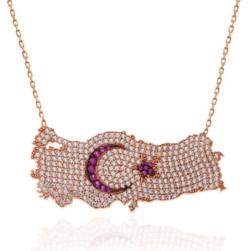 Gümüş Rose Ay Yıldız Türkiye Haritası Kadın Kolye (PT11003734)