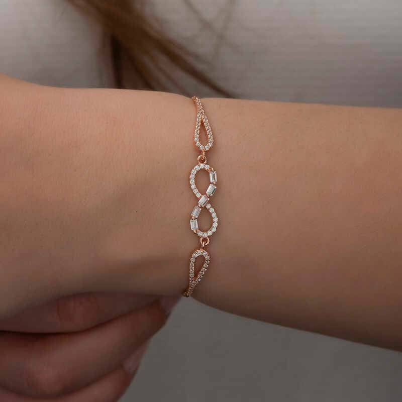 Gümüş Rose Baget Taşlı Sonsuzluk Bileklik
