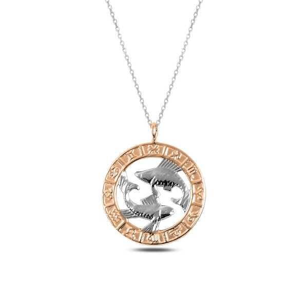 Astroloji ile yakından ilgilenenleri bu sezonda da en çok tercih edilen burç koleksiyonu ile tanıştırıyoruz. Modern stilin adeta aynası haline gelen birbirinden şık kolyeler, bu sezon da Zodyak üzerinde bulunan 12 takım yıldızının yansıması ile oluştu. Her burca özgü şans getiren özel tasarımlarla bir araya getirilmiş 12 farklı kolye çeşidi; astrolojinin gücüne inanların en iddialı aksesuar parçalarına dönüşecek. Hem şık hem de özel bir parça olan burç koleksiyonunda yer alan kolye modelleri ile ister kendinizi, ister sevdiklerinizi şımartabilirsiniz. Sevdiklerinize güven ve şans dileklerinizi sunmanıza yardımcı olan ve en güzel hediyenizi simgeleyen kolye modelleri ile tanışmak için siz de burç koleksiyonu ile tanışmak için acele edin. Balık, Zodyağın son astrolojik burcudur. Batı astrolojisine göre 20 Şubat ile 20 Mart arasında doğanlar bu burca mensup olur. Balık burcu kolye, 925 ayar gümüşten imal edilmiştir. Gümüş üzerine rose altın kaplama yapılmıştır. Rose kaplama yapılan gümüş kolyeler parlaklığını uzun süre muhafaza eder, gümüşü bakır rengine dönüştürür. Tüm bayan gümüş ürünlerde olduğu gibi gümüş balık burcu kolye de el emeği ile üretilmiştir. Gümüş ve değerli taşlar nedeniyle belirtilen ortalama ürün ağırlığında ± %10 sapma olabilmektedir.