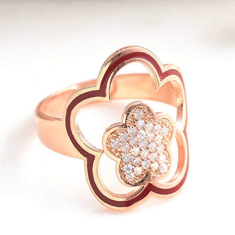 Özel günlerde kadınların tercihleri arasında ilk sıralarda yer alan yüzükler pek çok kadının kurtarıcısıdır. Spor ve klasik her kıyafetle kombinleyebileceğiniz çiçek desenli yüzük, çok uygun fiyatla karşınızda. Zarif çiçek motifi üzerine işlenen küçük beyaz zirkon taşlarla desteklenmiş bu modelle şıklığınızı tamamlayabilirsiniz. Bu yüzük modeli 925 ayar gümüşten imal edilmiştir. Gümüş üzerine rose kaplama yapılmıştır. Rose kaplama yapılan gümüş yüzük modelleri parlaklığını uzun süre muhafaza eder ve oksitlenmesi gecikir. Tüm gümüş yüzüklerde olduğu gibi gümüş çiçek desenli kadın yüzük modeli de tamamen el emeği ile üretilmiştir. Gümüş ve değerli taşlar nedeniyle belirtilen ortalama ürün ağırlığında ± %10 sapma olabilmektedir.