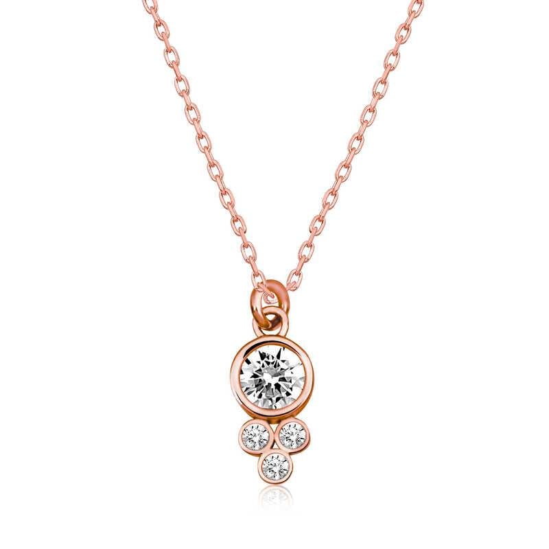 Gümüş Rose Çiğ Damlası Yuvarlak Tektaş Bayan Kolye