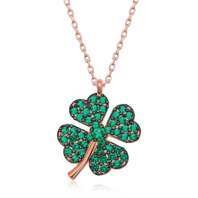 Gümüş Rose Dört Yapraklı Yonca Kadın Kolye