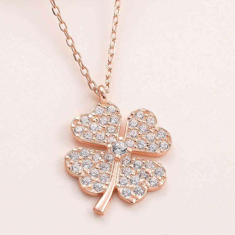Gümüş Rose Dört Yapraklı Yonca Kadın Kolye