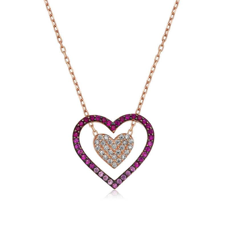 Kalp simgesi daima koşulsuz sevginin ve aşkın sembolü olmuştur. Dini öğretilerde ise kalbin gücü sınırsızdır. Çünkü kalp Yaradanın evi, bizim ise evrene açılan gerçeklik kapımızdır. İki kalp kolye sizi ve sevgilinizi temsil edecek. Bu şık iki kalp kolye; doğum günü hediyesi, sevgililer günü hediyesi veya annelere hediye olarak özel günlerde tercih edilebilecek mükemmel bir seçenektir. Gümüş iki kalp bayan kolye 925 ayar gümüşten imal edilmiştir. Bu kolye üzerinde rose kaplama yapılmıştır. Rose kaplama yapılan gümüş bayan kolye modelleri parlaklığını uzun süre muhafaza eder, gümüş rengini pembe renge çevirir. Üzerinde bulunan ışıl ışıl taşlar zirkondur. Tüm gümüş bayan kolye modellerimizde olduğu gibi gümüş iki kalp bayan kolye modeli de el emeği ile üretilmiştir. Gümüş ve değerli taşlar nedeniyle belirtilen ortalama ürün ağırlığında ± %10 sapma olabilmektedir.