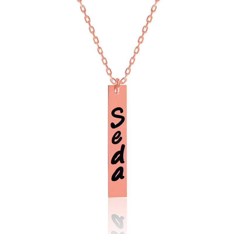 Gümüş Rose İsimli Çubuk Plaka Bayan Kolye