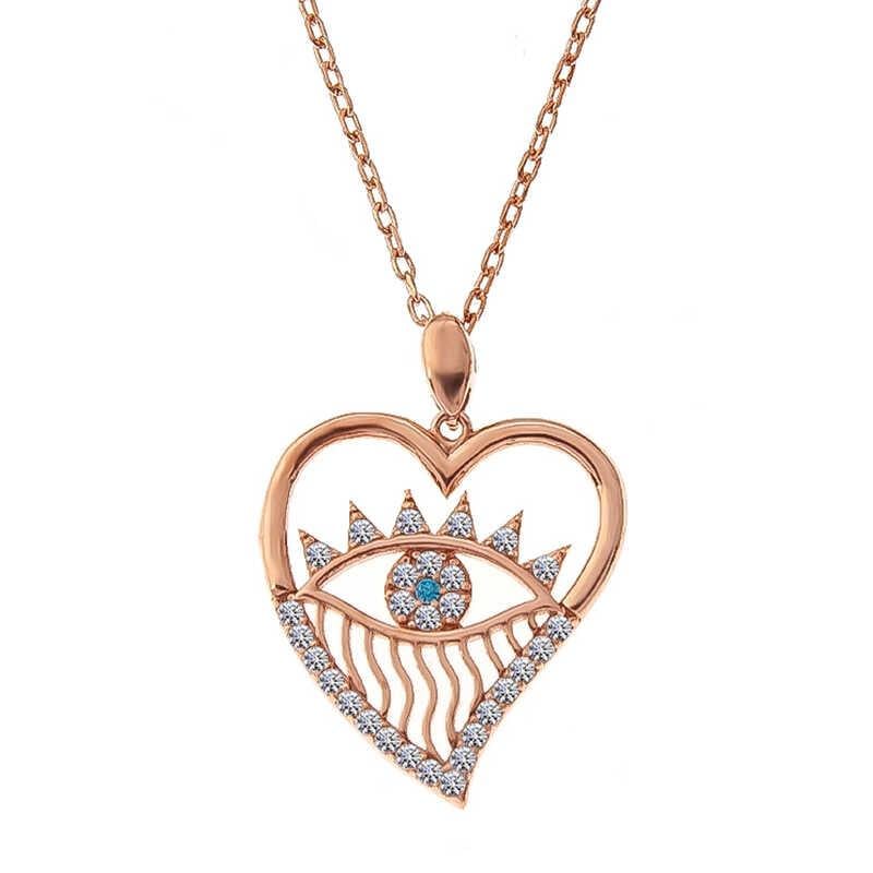 Gümüş Rose Kalp Göz Kadın Kolye