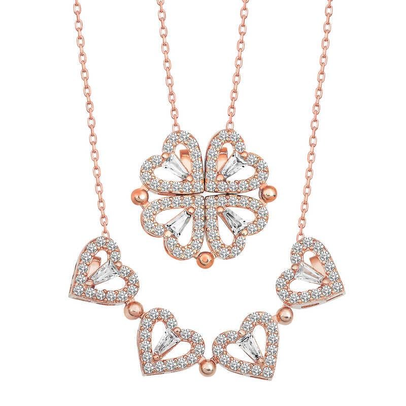 Gümüş Rose Kalpli Açılabilen Yonca Kadın Kolye