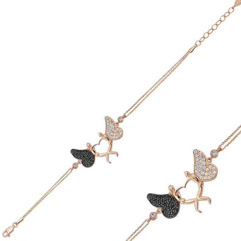 Gümüş Rose Kalpli Melek Bayan Bileklik