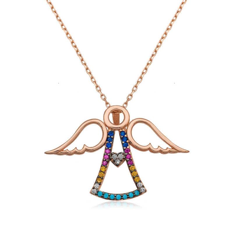 Gümüş Rose Kalpli Melek Bayan Kolye
