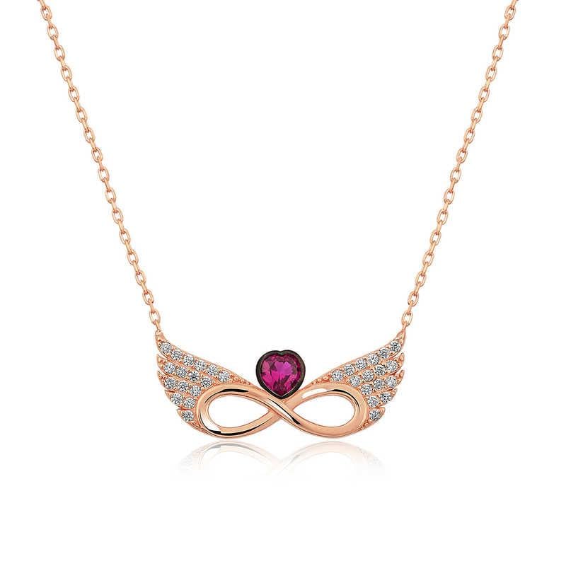 Melekler saflığın ve temizliğin simgeleridir. Bu nedenle melek kanatlı sonsuz kalp kolye hediye edilen kişiye, melekler kadar saf kalpli aşkın sonsuza kadar süreceği mesajı verilmek istenmektedir. Bu özel melek kanatlı sonsuz kalp kolye 925 ayar gümüşten imal edilmiştir. Gümüş üzerine rose kaplama yapılmıştır. Rose kaplama yapılan gümüş kolyeler parlaklığını uzun süre muhafaza eder ve oksitlenmesi gecikir. Tüm bayan gümüş kolyelerde olduğu gibi gümüş kanatlı sonsuz kalp kolye de el emeği ile üretilmiştir. Gümüş ve değerli taşlar nedeniyle belirtilen ürün ağırlığında ± %10 sapma olabilmektedir.