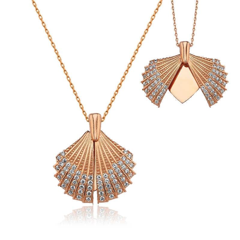 Gümüş Rose Kişiye Özel İstiridye Bayan Kolye (PT11002506)
