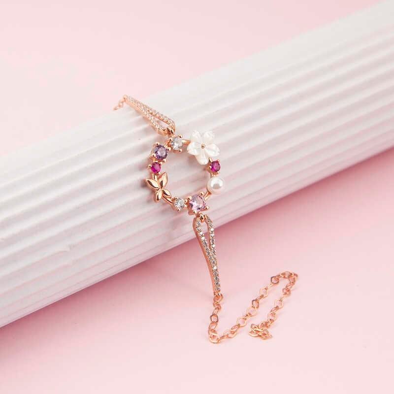 Gümüş Rose Manolya Çiçeği Kelebek Kadın Bileklik (BR11003819)