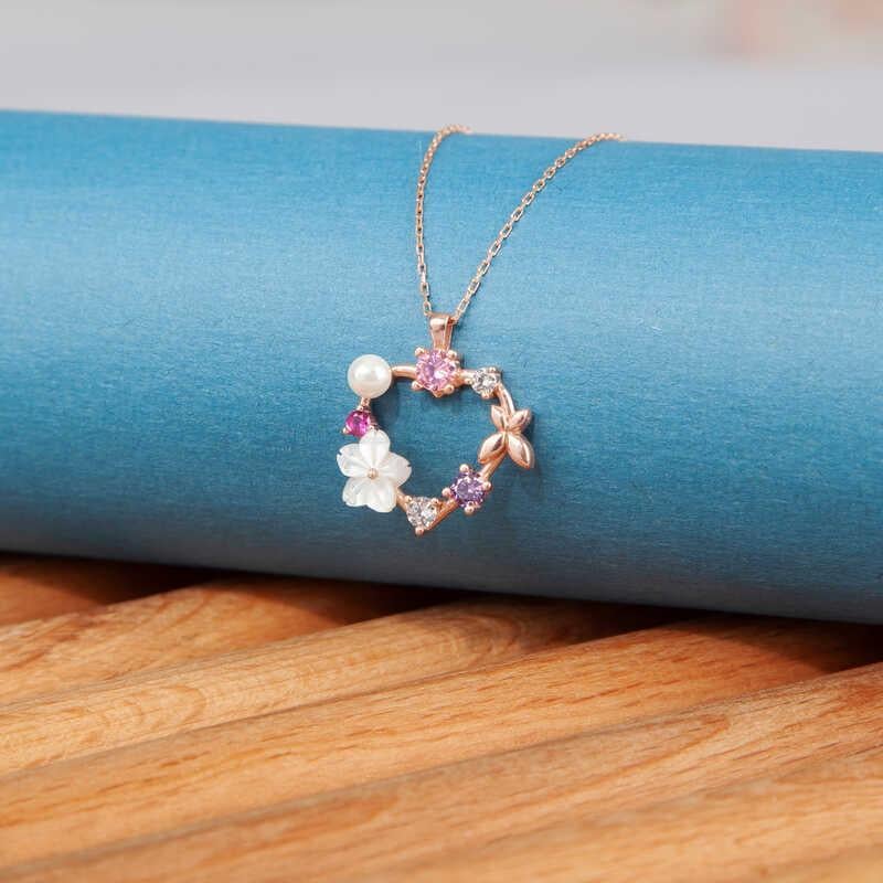 Gümüş Rose Manolya Çiçeği Kelebek Kadın Kolye