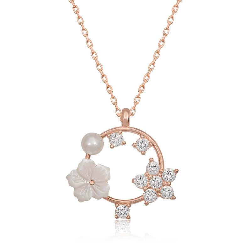 Gümüş Rose Manolya Çiçeği Yıldız Kadın Kolye