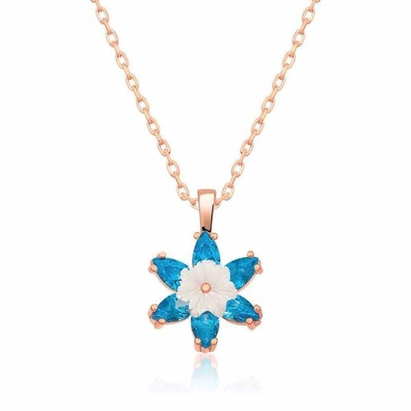 Gümüş Rose Mavi Lotus Çiçeği Kolye