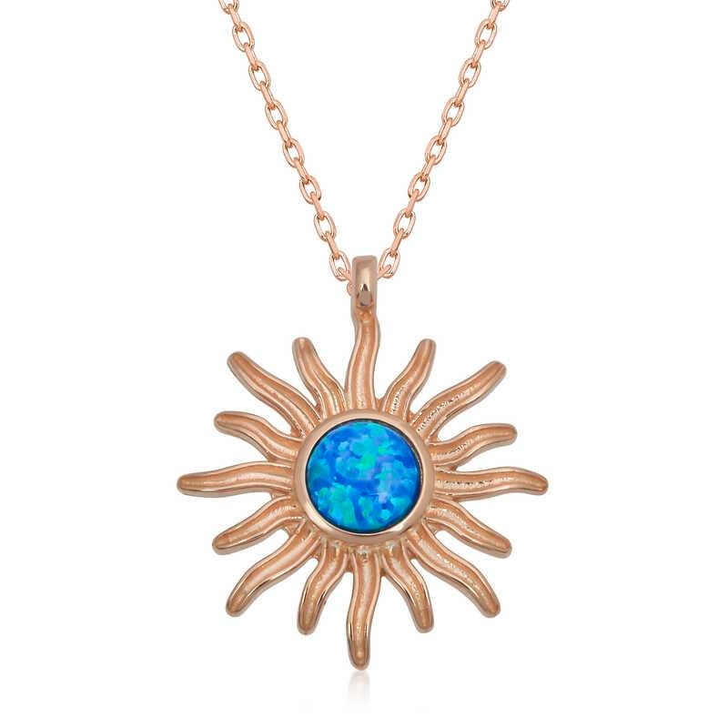 Gümüş Rose Mavi Opal Taşlı Güneş Kadın Kolye