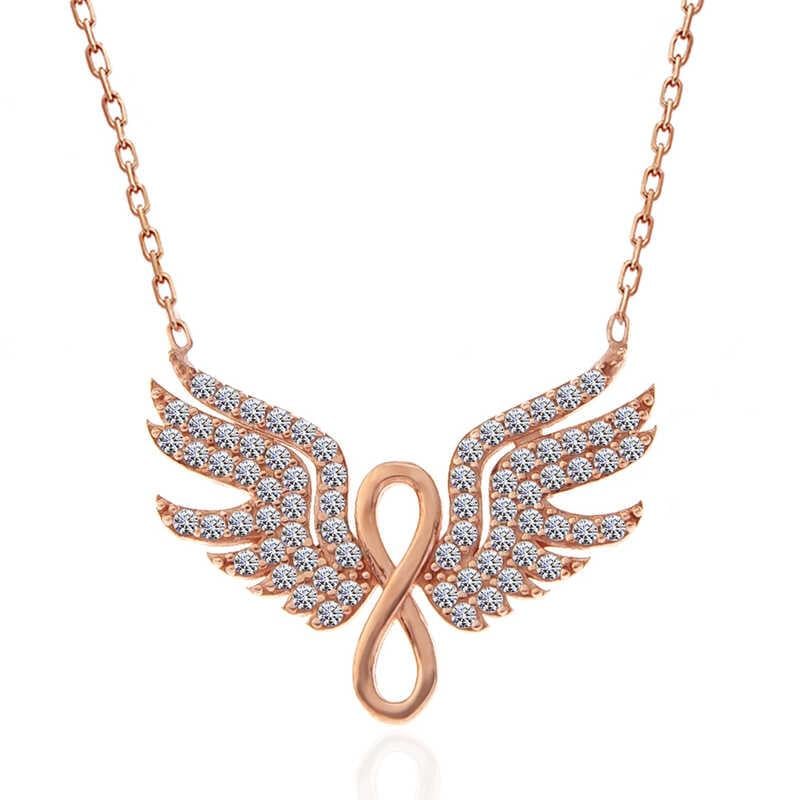 Gümüş Rose Melek Kanadı Sonsuzluk Kadın Kolye