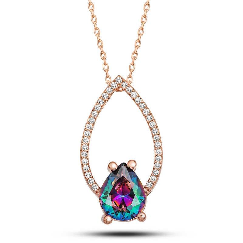 Gümüş Rose Mistik Topal Taşlı Damla Kadın Kolye
