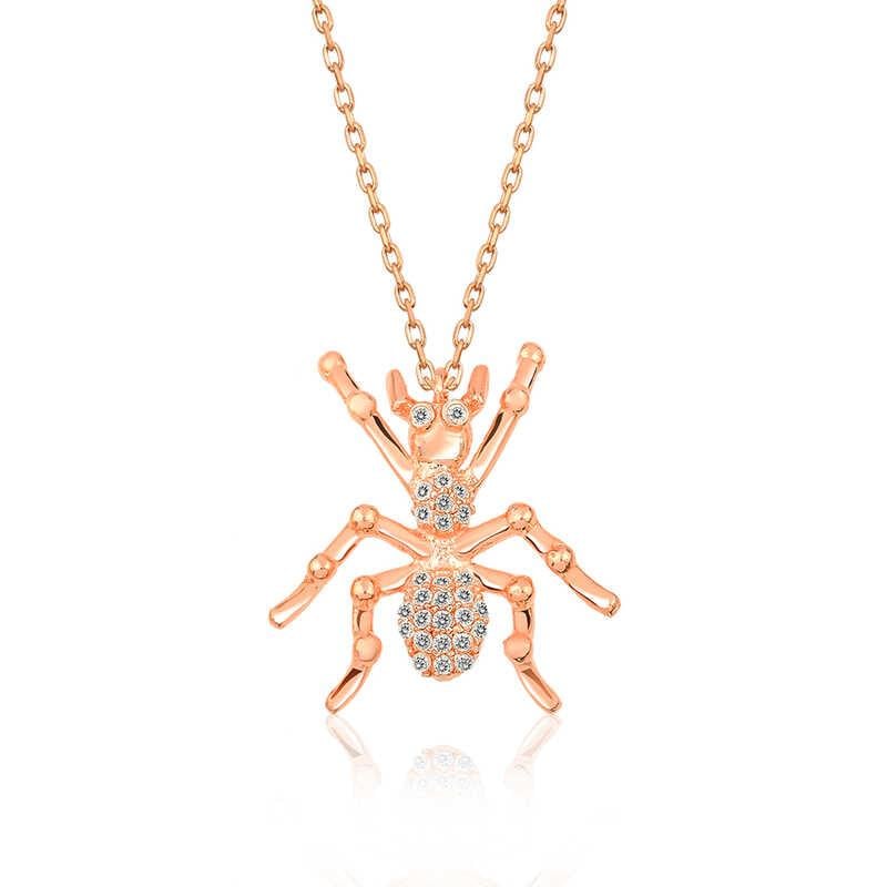 Örümcek; mitolojide, sembolizmde ve efsanelerde yer alan popüler kültürün çeşitli filmlerinde yer almışlardır. Müslümanlar için örümceğin önemi, Peygamberi (S.A.V) ve ilk Müslümanlardan Ebubekir’i (R.A.)Sevr Dağı’ndaki mağarada saklanırken koruyan ve düşmanının gözünden saklayan büyük ağı örmesinde yatar. Mağara önünde birden yetişen ağaca çabucak yuva kuran güvercinler de, bu öneme layık varlıklardandır. Gümüş örümcek bayan kolye modeli 925 ayar gümüşten imal edilmiştir. Gümüş üzerine rose kaplama yapılmıştır. Rose kaplama yapılan gümüş bayan kolyeler parlaklığını uzun süre muhafaza eder ve oksitlenmesi gecikir. Gümüş olan zincirin boyu ortalama 45 cm\"dir. Tüm gümüş bayan kolye modellerinde olduğu gibi gümüş örümcek bayan kolye modeli de el emeği ile üretilmiştir. Gümüş ve değerli taşlar nedeniyle belirtilen ortalama ürün ağırlığında ± %10 sapma olabilmektedir. Not : Üzerine yazılacak harfi not kısmında belirtiniz.