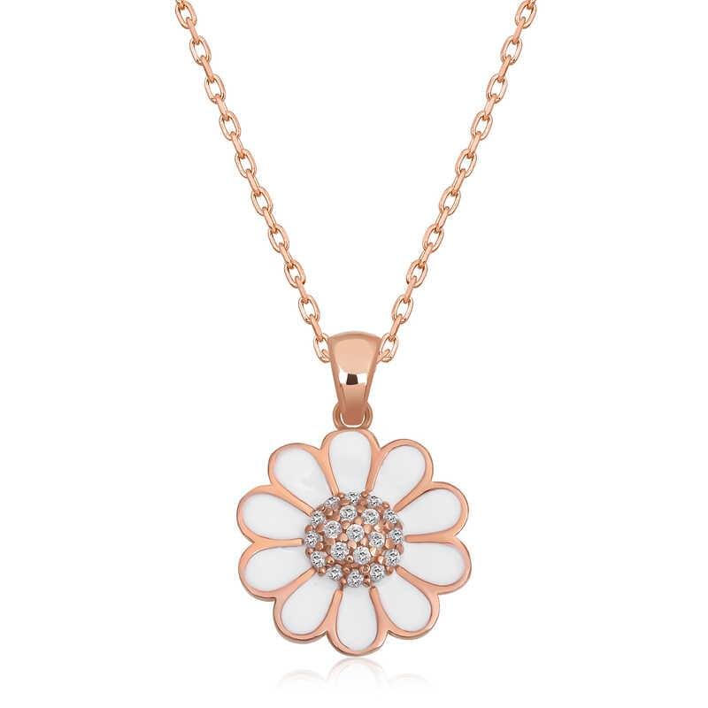 Papatya çiçeği temiz sevgi anlamını ifade eder. En büyük özelliklerinden biri her sapında bir tane olmasıdır. Bu güzellik tasarlanarak ortaya çıkan bu ışıl ışıl kolye zirkon taşlarla süslendi... Bu şık kolye; doğum günü hediyesi, sevgililer günü hediyesi veya annelere hediye olarak özel günlerde tercih edilebilecek mükemmel bir seçenektir. Gümüş papatya kadın kolye 925 ayar gümüşten imal edilmiştir. Bu kolye üzerinde rose kaplama vardır. Rose kaplama yapılan ürünler parlaklığını uzun süre muhafaza eder, gümüş rengini pembe renge çevirir. Üzerinde bulunan ışıl ışıl taşlar zirkondur. Tüm gümüş kadın kolye modellerinde olduğu gibi gümüş papatya kadın kolye modeli de el emeği ile üretilmiştir. Gümüş ve değerli taşlar nedeniyle belirtilen ortalama ürün ağırlığında ± %10 sapma olabilmektedir.