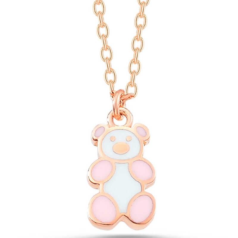 Gümüş Rose Renkli Ayıcık Kadın Kolye (PT11004146)