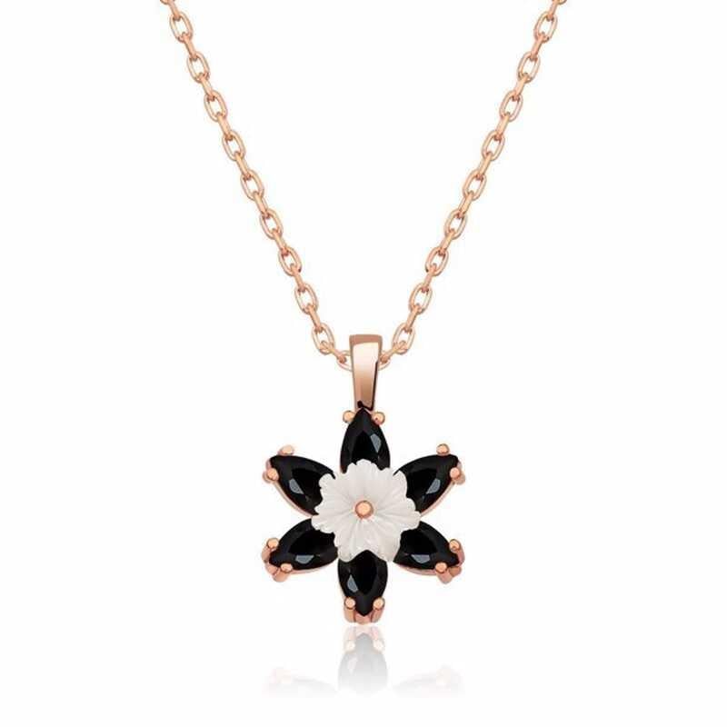 Gümüş Rose Siyah Lotus Çiçeği Kolye