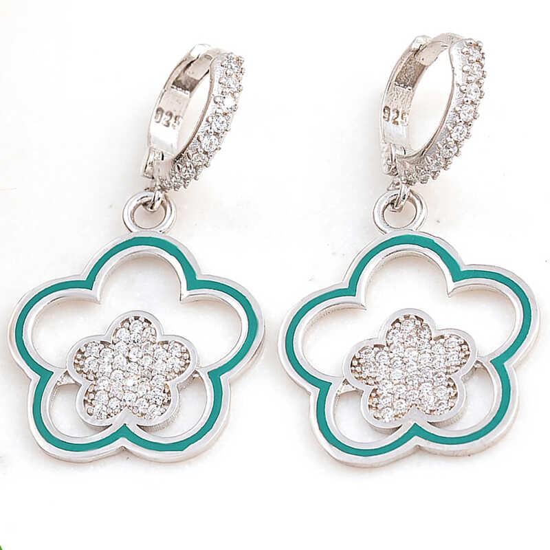 Özel günlerde kadınların tercihleri arasında ilk sıralarda yer alan küpeler pek çok kadının kurtarıcısıdır. Spor ve klasik her kıyafetle kombinleyebileceğiniz çiçek desenli küpe, çok uygun fiyatla karşınızda. Zarif çiçek motifi üzerine işlenen küçük beyaz zirkon taşlarla desteklenmiş bu modelle şıklığınızı tamamlayabilirsiniz. Bu küpe modeli 925 ayar gümüşten imal edilmiştir. Gümüş üzerine rodyum kaplama yapılmıştır. Rodyum kaplama yapılan gümüş küpe modelleri parlaklığını uzun süre muhafaza eder ve oksitlenmesi gecikir. Tüm gümüş küpelerde olduğu gibi gümüş sallantılı çiçek desenli kadın küpe modeli de tamamen el emeği ile üretilmiştir. Gümüş ve değerli taşlar nedeniyle belirtilen ortalama ürün ağırlığında ± %10 sapma olabilmektedir.