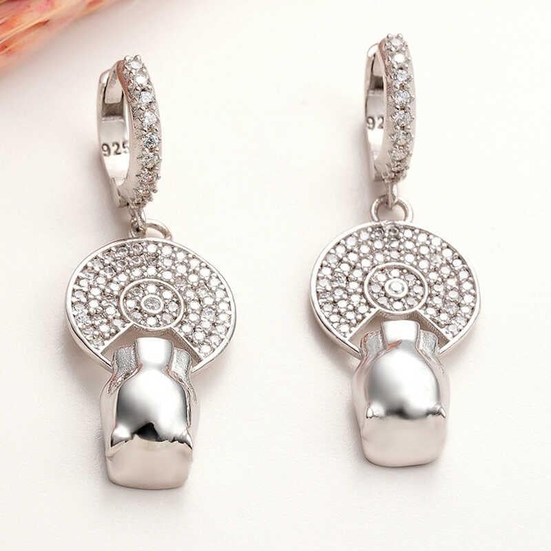 ​Gümüş Sallantılı Kaplan Figürlü Kadın Küpe