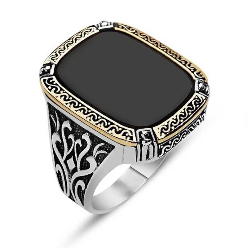 Gümüş Siyah Taşlı Erkek Yüzük