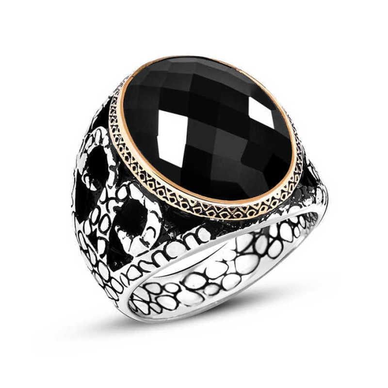 Gümüş üzerindeki oniks taşından oluşan bu yüzük modeli günün her anında kullanabileceğiniz şık bir aksesuardır. Bu yüzüğü; kendinize ya da sevdiklerinize doğum gününde, babalar gününde yada özel günlerde hediye edebilirsiniz. Siyah zirkon taşlı erkek yüzük modeli 925 ayar gümüşten imal edilmiştir. Gümüş üzerine oksit kaplama yapılmıştır. Oksit kaplama yapılan gümüş erkek yüzük modelleri parlaklığını uzun süre muhafaza eder. Tüm erkek yüzüklerde olduğu gibi gümüş siyah zirkon taşlı erkek yüzük modeli de el emeği ile üretilmiştir. Gümüş ve değerli taşlar nedeniyle belirtilen ortalama ürün ağırlığında ± %10 sapma olabilmektedir.