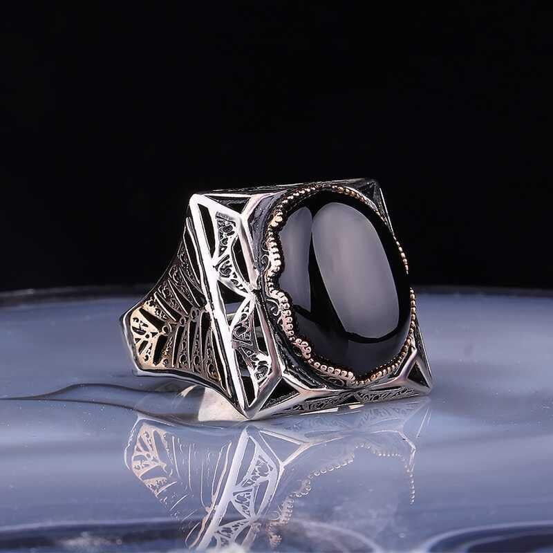 Gümüş üzerindeki siyah zirkon taştan oluşan bu erkek yüzük modeli günün her anında kullanabileceğiniz şık bir aksesuardır. Bu yüzüğü; kendinize ya da sevdiklerinize doğum gününde, babalar gününde ya da özel günlerde hediye edebilirsiniz. Zirkon taşlı erkek yüzük modeli 925 ayar gümüşten imal edilmiştir. Gümüş üzerine oksit kaplama yapılmıştır. Oksit kaplama yapılan gümüş erkek yüzük modelleri parlaklığını uzun süre muhafaza eder. Tüm erkek yüzüklerde olduğu gibi gümüş siyah zirkon taşlı erkek yüzük modeli de el emeği ile üretilmiştir. Gümüş ve değerli taşlar nedeniyle belirtilen ortalama ürün ağırlığında ± %10 sapma olabilmektedir.