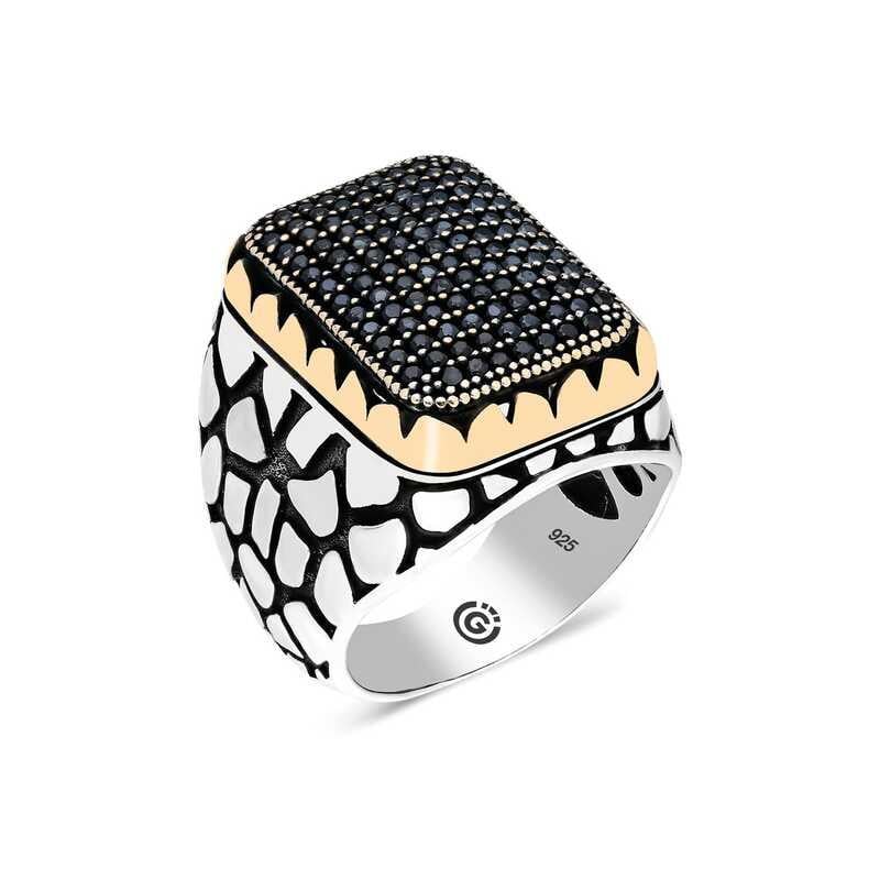 Gümüş Siyah Zirkon Taşlı Kare Erkek Yüzük