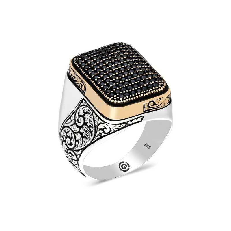 Gümüş Siyah Zirkon Taşlı Kare Erkek Yüzük