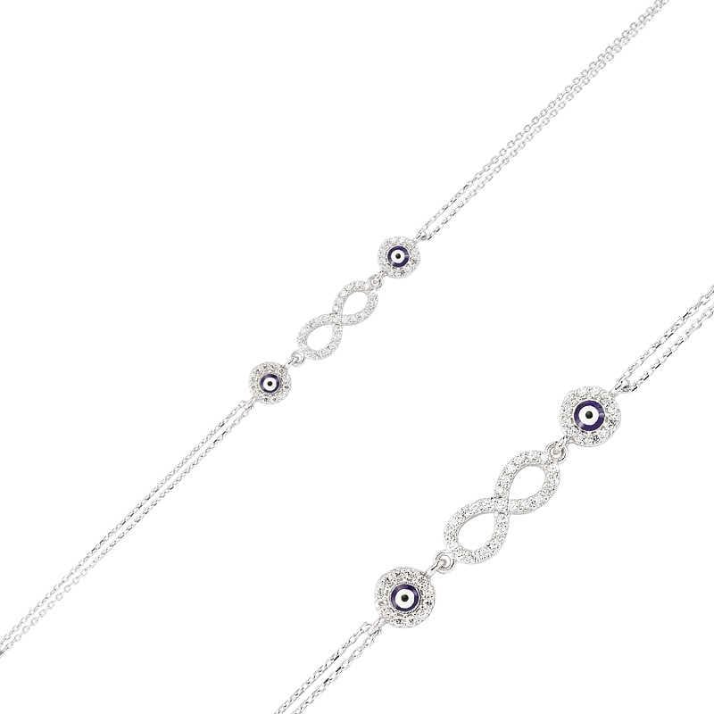 Sevgilinize sonsuz aşkı ifade etmenin en güzel, en anlamlı yollarından biri tabi ki sonsuzluk sembolüdür... Sevgilinize hediye edeceğiniz bu anlamlı gümüş bileklik ile ona olan sonsuz aşkınızı ve sevginizi ifade edebilir sonsuza kadar birlikte olacağınız mesajı verebilirsiniz. Sonsuzluk bileklik 925 ayar gümüşten imal edilmiştir. Gümüş üzerine rodyum kaplama yapılmıştır. Rodyum kaplama yapılan ürünler parlaklığını uzun süre muhafaza eder, oksitlenmesi gecikir. Gümüş sonsuzluk bayan bileklik üzerinde bulunan taşlar zirkondur. Tüm bayan bilekliklerde olduğu gibi sonsuzluk bayan bilekliğin tamamı da el emeği ile üretilmiştir. Gümüş ve değerli taşlar nedeniyle belirtilen ortalama ürün ağırlığında ± %10 sapma olabilmektedir.