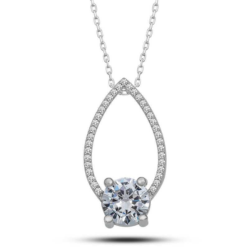Gündelik hayatta, özel günler ve gecelerde tercih edebileceğiniz ışıl ışıl taşları ile yıldızları anımsatan bu kolyeyi severek kullanacaksınız. Şık bir görünüm yakalamak isteyen tüm kadınlara hitap eden, modası geçmeyecek olan taşlı gümüş kolye sizleri bekliyor. Gümüş tektaş damla kadın kolye; doğum günü hediyesi, sevgililer günü hediyesi veya annelere hediye olarak özel günlerde tercih edilebilecek mükemmel bir seçenektir. Tektaş damla kadın kolye 925 ayar gümüşten imal edilmiştir. Gümüş üzerine rodyum kaplama yapılmıştır. Rodyum kaplama yapılan kadın kolyeler parlaklığını uzun süre muhafaza eder, oksitlenmeyi geciktirir. Üzerinde bulunan taşlar zirkondur. Zincir boyu ortalama 45 cm\"dir. Tüm kadın kolyelerde olduğu gibi gümüş tektaş damla kadın kolye de el emeği ile üretilmiştir. Gümüş ve değerli taşlar nedeniyle belirtilen ortalama ürün ağırlığında ± %10 sapma olabilmektedir.