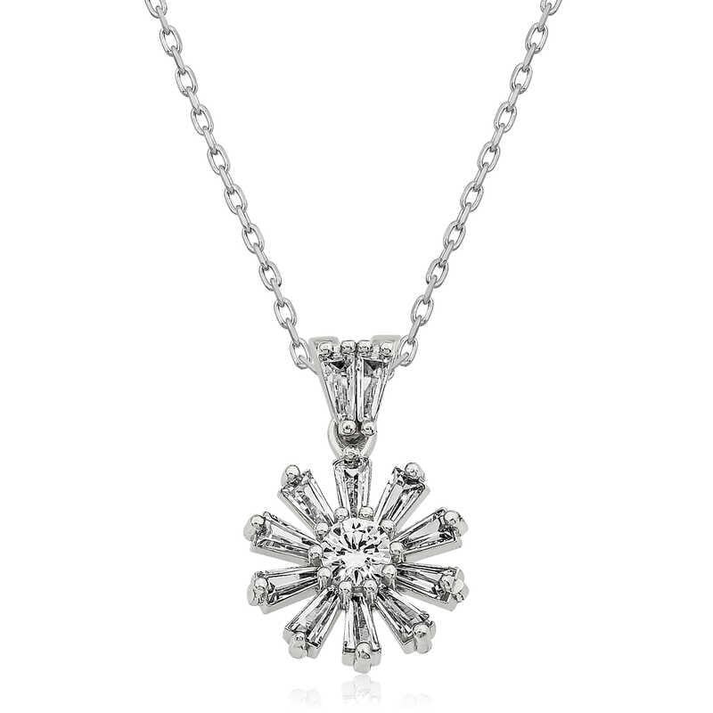 Gümüş Trapez Taşlı Çiçek Bayan Kolye (PT11001983)
