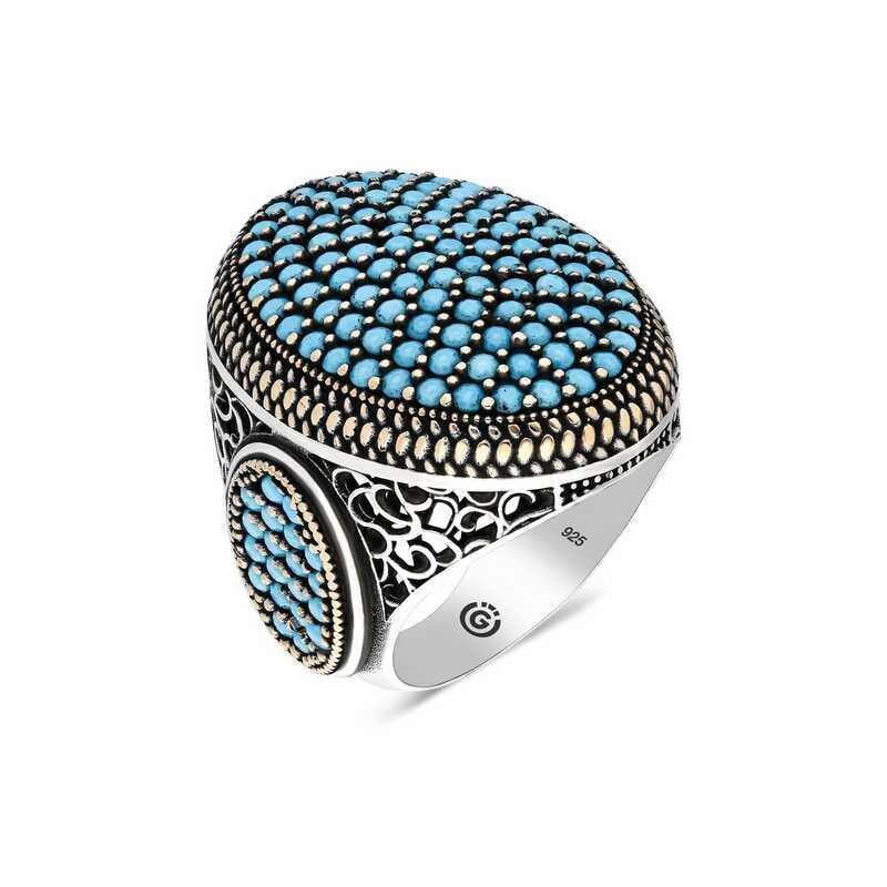 Gümüş Turkuaz Zirkon Taşlı Oval Erkek Yüzük