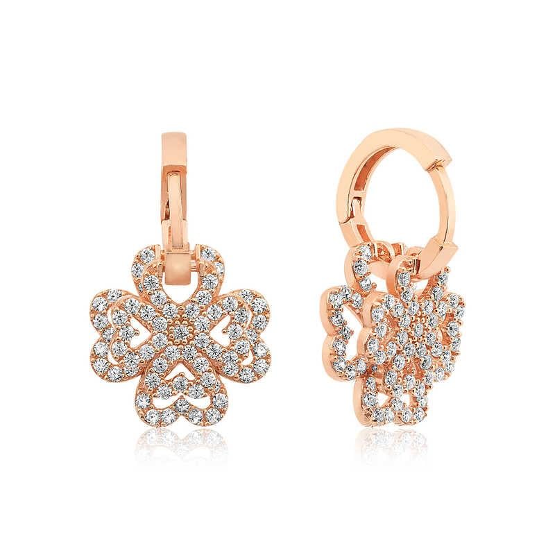 Dört yapraklı yonca bütün kültürlerde iyi şansın sembolü olarak kabul edilir. Yoncanın dört yaprağının da ayrı birer anlamı vardır. Birinci yaprak ümidi, ikincisi imanı, üçüncüsü aşkı, dördüncü yaprak ise şansı simgeler. Kalpli yoncadan oluşan özel tasarım bayan küpe modeli 925 ayar gümüşten imal edilmiştir. Bu zarif küpe genç aşıkların özel günlerde tercih edebileceği çok şık bir seçenek olacaktır. Gümüş üç boyutlu yonca bayan küpe üzerinde rose kaplama vardır. Rose kaplama yapılan gümüş bayan küpeler parlaklığını uzun süre muhafaza eder, gümüşe pembe rengini verir ve oksitlenmeyi geciktirir. Gümüş üç boyutlu yonca küpe sizin olduğu kadar sevdiklerinizin de keyifle takacağı en güzel hediyelerden biri olacaktır. Tüm gümüş bayan küpe modellerimizde olduğu gibi gümüş üç boyutlu küpe de el emeği ile üretilmiştir. Gümüş ve değerli taşlar nedeniyle belirtilen ürün ağırlığında ± %10 sapma olabilmektedir.