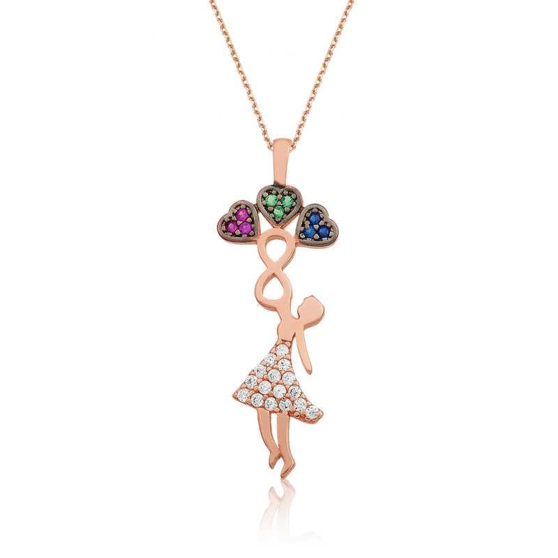 Aşkınızı bütün saflığı,tamizliği ve sonsuzluğuyla anlatmanız için tasarladığımız bu rengarenk kolye ile hayata ışıl ışıl sevgi penceresinden bakmaya ne dersiniz? Bu şıklığı; doğum günü hediyesi, sevgililer günü hediyesi veya annelere hediye olarak özel günlerde tercih edilebilecek mükemmel bir seçenektir. Bu şık kolye; 925 ayar gümüşten imal edilmiştir. Gümüş kolye üzerine rose kaplama yapılmıştır. Rose kaplama yapılan bayan kolyeler parlaklığını uzun süre muhafaza eder, gümüş rengini pembe renge dönüştürür ve oksitlenmeyi geciktirir. Zincir boyu ortalama 45 cm\"dir. Tüm gümüş bayan kolyelerde olduğu gibi bu gümüş üç kalp tutan bayan kolye de tamamı el emeği ile üretilmiştir. Kolye üzerindeki taşlar zirkondur. Gümüş ve değerli taşlar nedeniyle belirtilen ortalama ürün ağırlığında ± %10 sapma olabilmektedir.